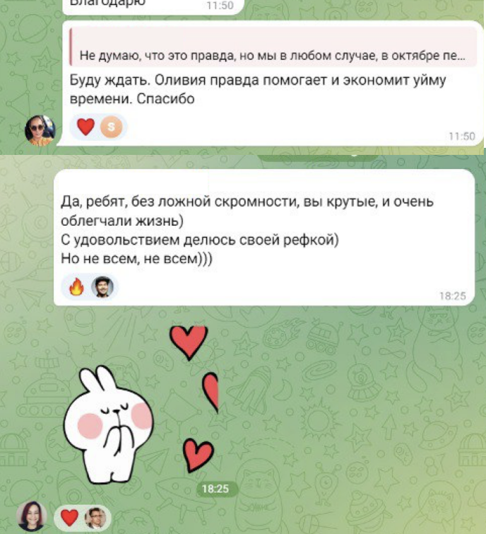 На сегодняшний день уже более 400 экспертов, блогеров, продюсеров и маркетологов пользуются Olivia Eazy из абсолютно разных сфер деятельности. Это и люди, которые занимаются инфобизнесом, онлайн-образованием, это и маркетологи, которые ведут крупные компании, это также эксперты, которые развивают свой личный блог на абсолютно разные тематики. Именно поэтому Olivia Eazy сделан таким образом, чтобы подходил абсолютно каждому человеку, который хочет взаимодействовать со своей аудиторией через онлайн